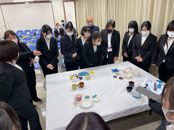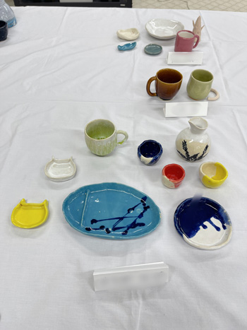 今年のテーマは『日常』。土の性質、成形技法、釉薬の選び方、焼成の工程まで基礎から応用まで学び、生活の中で実際に使える器づくりに挑戦してきました。発表会では、食器や花器など、日常に寄り添う作品がずらりと並び、どれも学生の個性が光る仕上がりで、見ている側も思わず手に取りたくなるような魅力がありました。