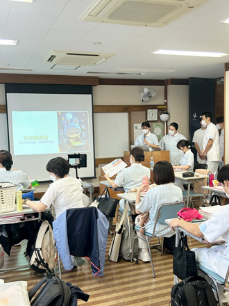子どもの発達段階に合わせて遊びや援助を行うことが子どもの成長、発達に繋がるということについて、自分たちの体験に基づきながら発表を行いました。実習に行った場所は同じだったけれど、各グループそれぞれの学びがあり、発表しあうことによってさらに学びを深めることができました。そして、子ども観、小児看護観が形成できる発表会になったと思います。短い時間の中での発表準備だったため、大変な思いをしながら取り組んだので、各グループ達成感が多く得られた発表会だったと思います。